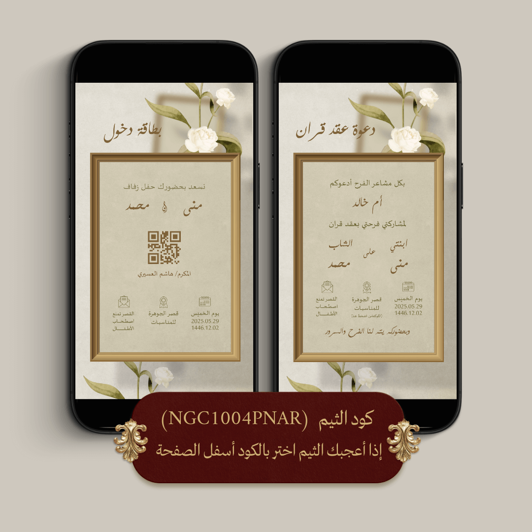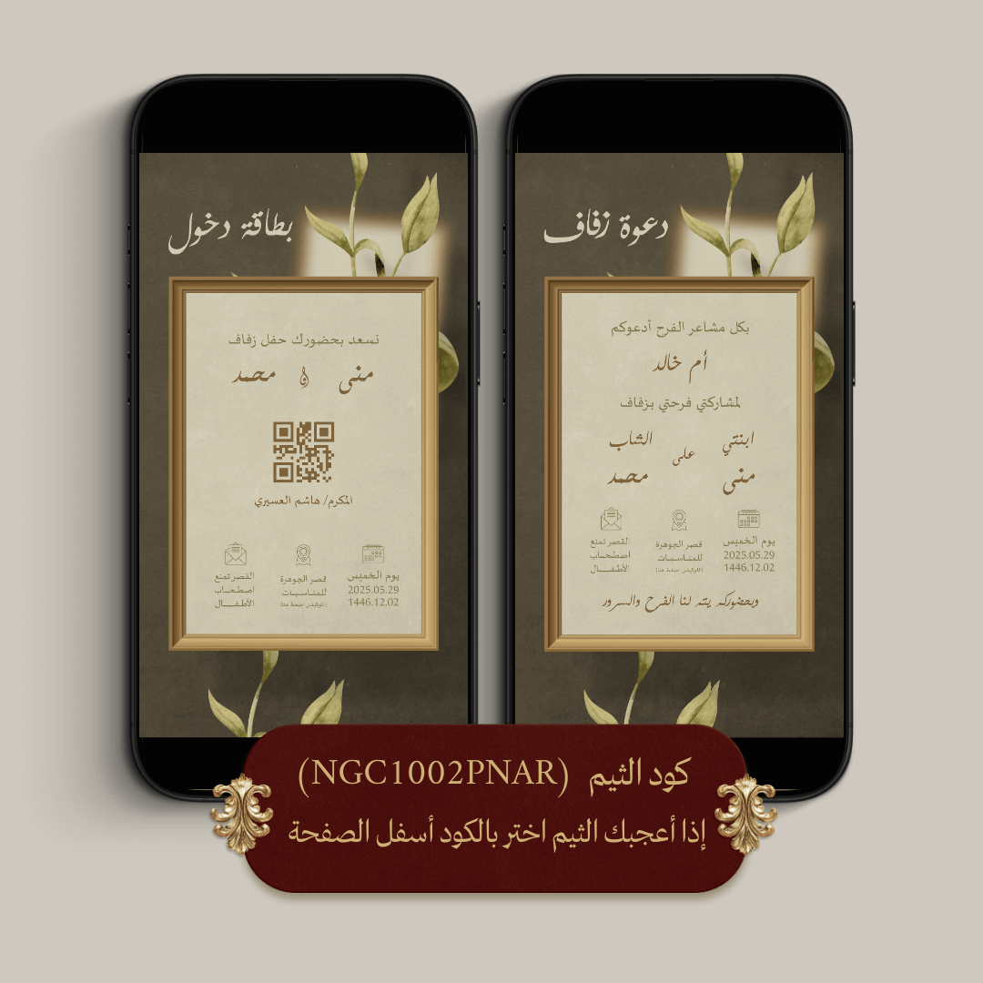 • بطاقة دخول شخصية رقمية (QR Code): كود خاص وغير مكرر لكل ضيف، يرافق الدعوة الرقمية ويحتوي على اسم الضيف وبيانات الدخول.